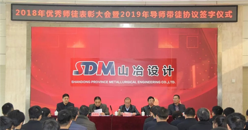 126日上午,山冶設(shè)計(jì)2018年度優(yōu)秀師徒表彰大會(huì)暨2019年導(dǎo)師帶徒協(xié)議簽字儀式在濟(jì)南高新區(qū)辦公樓舉行。公司董事長魏新民、總經(jīng)理衣忠德、黨委書記谷卓奇,副總經(jīng)理孫彤、劉洪亮及2018年優(yōu)秀師徒代表、2019年新結(jié)對(duì)師徒代表參加了本次大會(huì)。
