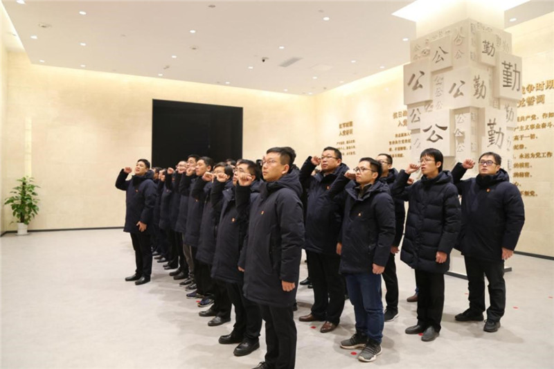 隨后,在宣誓廳,全體黨員重溫入黨時的決心,莊嚴地舉起右手,又一次向黨旗作出鄭重承諾,堅定為黨的事業奮斗終身的理想信念。