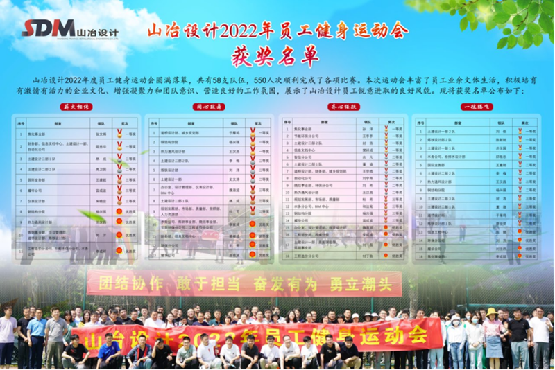 運動會共設置了四個團隊協作項目,“一毽騰飛”、“齊心繩躍”、“同心鼓舞”和“薪火相傳”,趣味性與挑戰性并存、鍛煉運動員的靈活性、協調性和團隊默契。經過認真策劃組織,共有58支隊伍,500多名運動員順利完成了各項比賽。全體運動員、裁判員充分發揮“團結協作、敢于擔當、 奮發有為、勇立潮頭”的精神,取得了優異的成績,展示了山冶設計員工銳意進取的良好風貌。