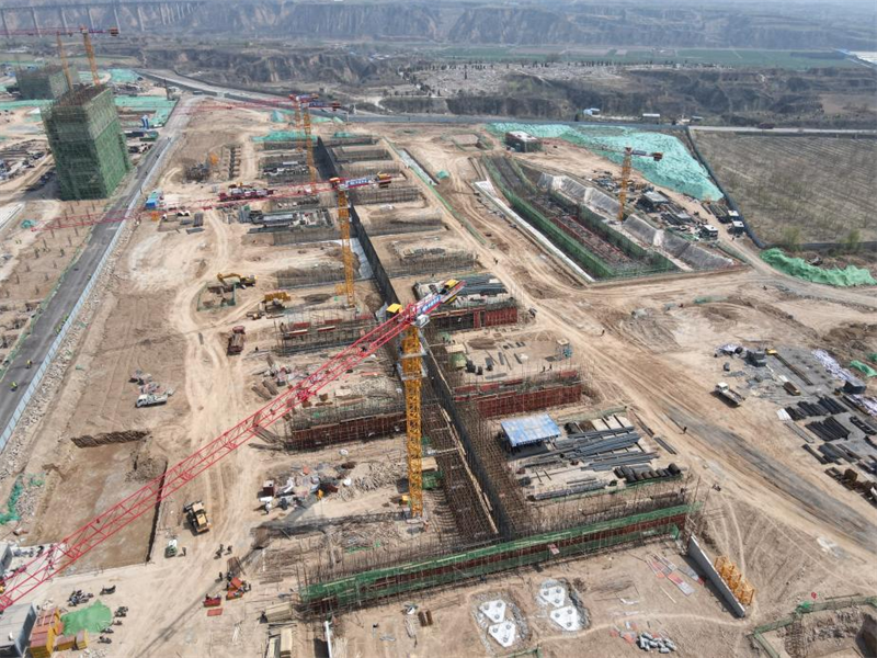 備煤區域的煤塔施工至30米標高,完成土建施工的60%;配煤槽雙曲線漏斗施工完成過半,上部筒倉滑模施工已經具備條件;汽車卸料棚深基坑底板基礎完成,正在進行地下室部位的施工,總體進度完成30%;C型料場在3月上旬完成場地移交后,土建基礎的施工也在加速進行,累計已完成基礎澆筑1萬余立方,已經分段進行料格擋墻上部結構的施工。