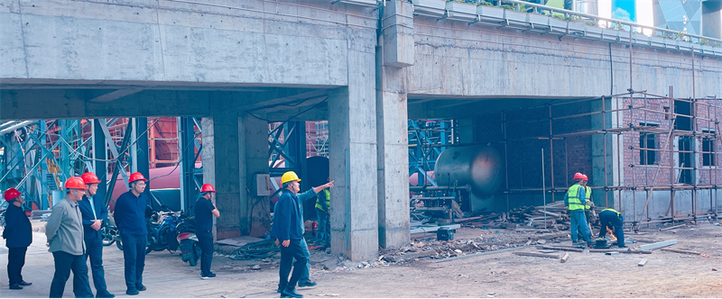 項目伊始,節能環保分公司克服部門工程項目多,多點開花,時間緊、任務重,人員力量嚴重不足的困難,積極調配人員力量。項目前期精心設計,從根本上提高項目盈利能力;項目推進過程中,項目部面臨諸多挑戰。施工場地狹窄,設備運輸和安裝空間有限,施工難度加大;此外,還有高處交叉作業多、現場噪音不斷等諸多不利因素。項目部全體成員心懷危機意識,嚴控項目成本的同時,秉持著“黃沙百戰穿金甲,不破樓蘭終不還”的堅定信念,迎難而上,各司其職,統籌安排,各專業間相互配合,巧妙利用有限的空間,對跨煤氣管道等危大吊裝、高處作業等高風險作業進行實時管控。項目部定期召開推進會,穩步推動施工進度,最終按期完工。項目執行過程中,項目部也為項目后期決算工作做了充分的準備。該項目的順利完工,離不開公司各部門、各科室的大力支持。2024年11月6日,宋志順董事長、劉紅軍副總經理、馬健副院長更是百忙之中到脫硫現場指導工作。