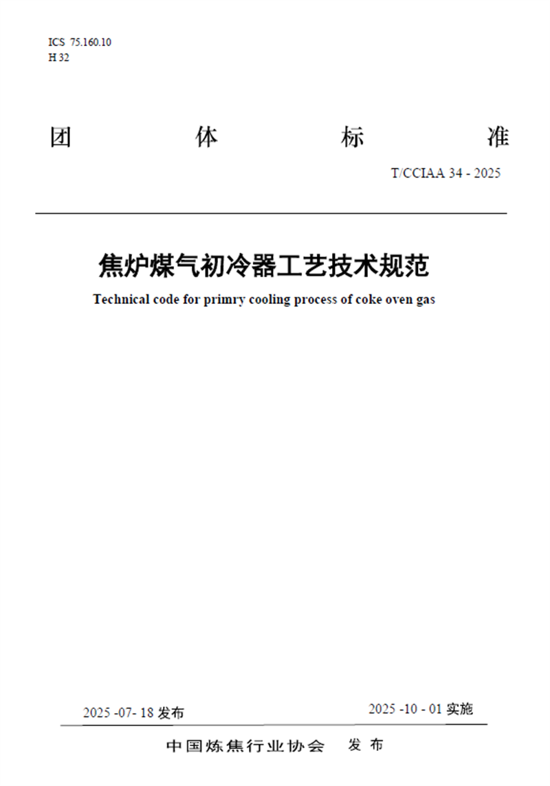 7月18日,由山冶設計主編的《焦爐煤氣初冷器工藝技術規范》T/CCIAA 34-2025(簡稱《規范》)正式發布并實施。《規范》對焦化煤氣凈化初冷器的工藝流程、操作參數以及質量指標作出了詳細規定,同時統一了初冷器的設計與操作標準,保障了煤氣冷卻過程的高效性與安全性。《規范》的發布與實施,可指導焦化企業在生產過程中有效把控初冷器的日常操作,為后續煤氣凈化及深加工的穩定運行創造有利條件。這是繼2024年7月1日正式實施、山冶設計主編的《焦爐煤氣脫硫廢液干法制酸技術規范》YB/T6115 - 2023之后的又一個行業規范,充分體現了山冶設計在焦化行業的技術引領作用與品牌影響力。