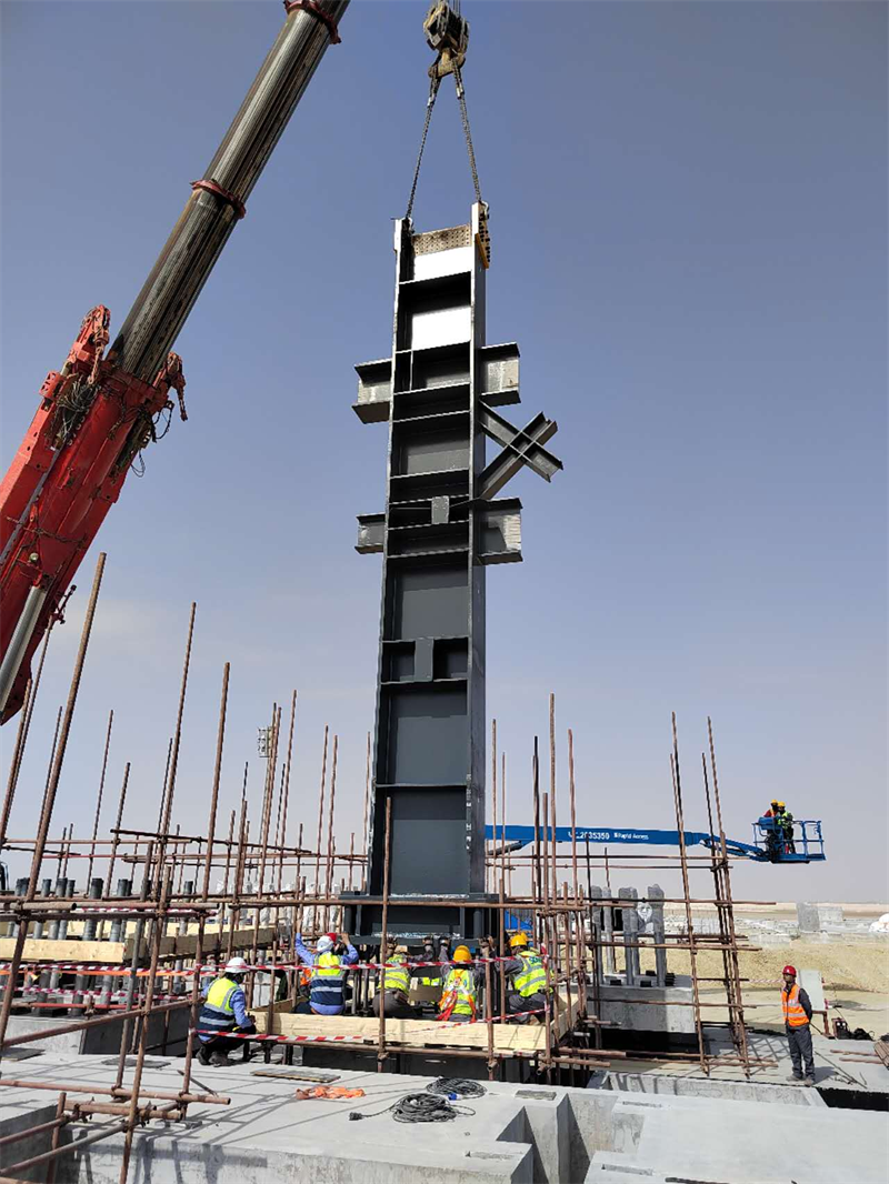 項目的靈魂,在于人。在這片遙遠的沙漠中,項目團隊凝聚成一支極具戰斗力的“鋼鐵駝隊”。團隊精神在日常點滴中閃光——為了追趕因業主船期延誤的工期,安裝團隊主動將作業計劃精確到小時,輪流值守,保證鋼構件到現場24小時內即完成開箱驗收;為了攻克一個技術難題,中外工程師們常常在會議室里爭論到深夜,又在達成共識后相視一笑;面對日均40℃以上的高溫,HSE團隊創新工作制度,提供全方位后勤保障,而工人們則用濕毛巾裹住脖子,堅守崗位,汗水一次次浸透工裝。